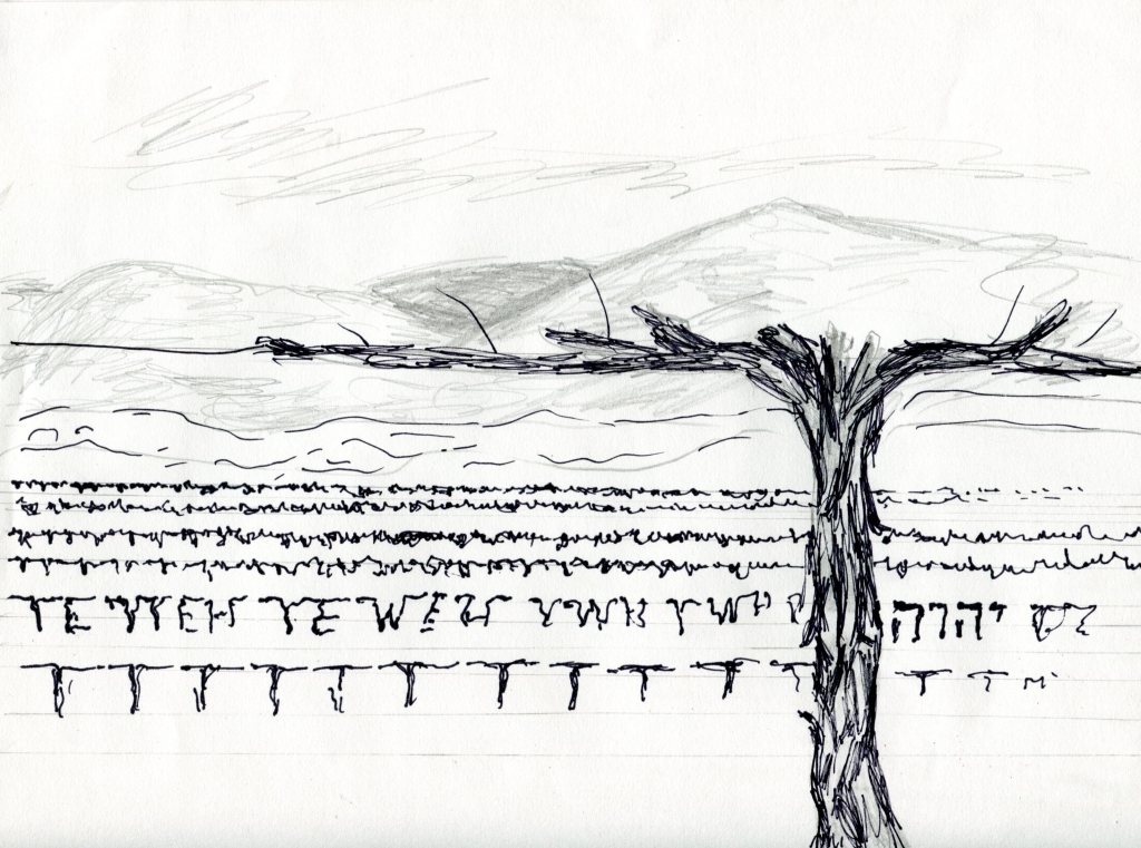 A winter’s day — a clean page — The task is to prune the vineyard. When he first took on this land Ezra planted this vineyard between the river and the cottage where I once grew wheat. Now Ezra, whom I instructed only yesterday on thatch is telling me how to prune vines. I thought I knew.