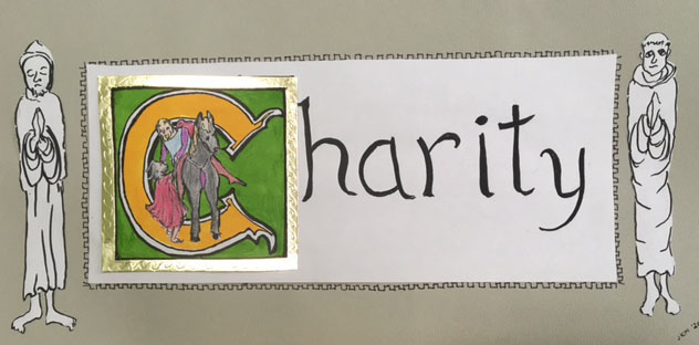 “I mean the story of St. Martin himself offering charity to a poor man who had no cloak. Even though he was well off and a soldier he used his sword to sever his own cloak into two parts then he leaned down from his horse and gave the poor man half his cloak.”