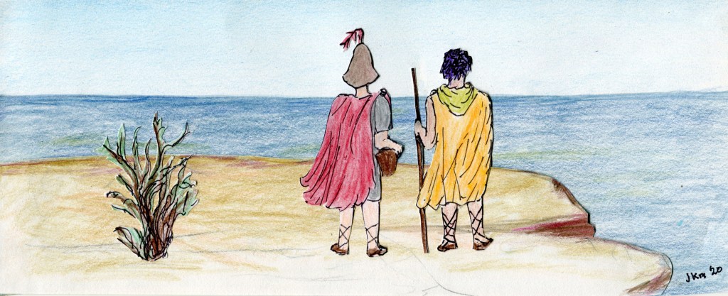 “It’s okay. I will trade off the Roman gear. But Brother Lazarus, you need to know since I was a young man with nearly ever step I’ve taken on land I’ve been clothed in the colors of Rome and looking out at the world through the window of soldier’s helmet. I don’t even know who I am now as this old and worn man mingling into the civilian milieu as though I were no one special. So you must become my shining reason now.”
