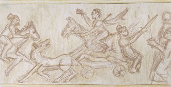 Remembering 462 C.E., A very earthly enemy invasion was coming down on us from the eastern coast of Hispania. The first arrow arced through the vines of portico into the midst of our meeting. The next seemed to take an eternity to arrive, though it was only a few seconds. It was the stop of time we needed to realize we were under siege. Everyone, the family, the cult worshipers, the servants, all the able-bodied people who were neither guards nor soldiers crowded into the few wagons and carts available at the stables. As I prepared to ride ahead with the warning of the invasion, the elderly don, with his own sword already in hand, stopped me to hand me the gospel to take it back with me to Bracara for “safe keeping.” Then right behind him was Susannah begging me, before I left, to help get those who were too weak from hunger into the wagons for safety. Arrows were landing all around us like sleet in an oddly-seasoned storm, and we knew in another instant there would be spears and swords and cavalry. We must have already been in their sights, because the arrows were finding marks. Susannah was felled as we were lifting a starving ascetic onto the wagon bed; Susannah died there to save the life of one who had already chosen heaven over earth. I laid both women onto the wagon before an arrow came into my own shoulder.