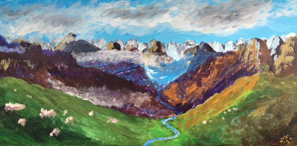 The garden fragrance of the oil seems earthy and soft rubbed onto the warm skins of our animals. And here are the rocks and the ridge of a mountaintop. But, also here is a spread of grasses sloping down both sides of this level ridge like a cloth lain onto a rough-hewn table. We set the beasts to graze and the donkey’s burden is laid out on the rocks to dry in the sunlight. It is a moment to nap on our fleeces setting our faces toward the silent promenade of cloud forms and fantasies in all their billows across the heavens.