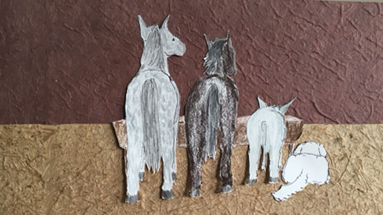 Nic is prepared to begin the lessons in owning the power by offering his wondrous animal training technique. “So, when I got The Rose, my first horse, everyone was telling me ‘to train a spirited animal like this first you need to show him who is boss.’ Having been in the military for so many years I do know this is an important first step — training rank. So I said to The Rose, ‘You need to know who is boss, and I will tell you: When it is a man thing like entering into buildings, or walking on two legs and speaking, then I am the boss; but when it’s a horse thing, you are the horse so you are the boss.’ So we’ve agreed to that, and it seems to be working out well. I’ve needed no leather thongs for flailing, only braids for holding the saddle onto his back so he can do all the trots and gallops and leaps and dances horses tend to do and I’ll stay astride. We’ve worked it out as though we were a captain and his mate.” The Rose standing at the critter end of the lean-to, twitches an ear and offers a snort of agreement.