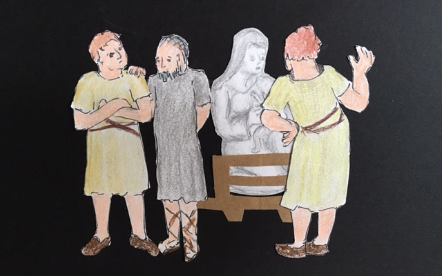 “Laz, these men were working on this new basilica, and they took notice of the sculpture I’ve purchased. They think the artist is their brother.”