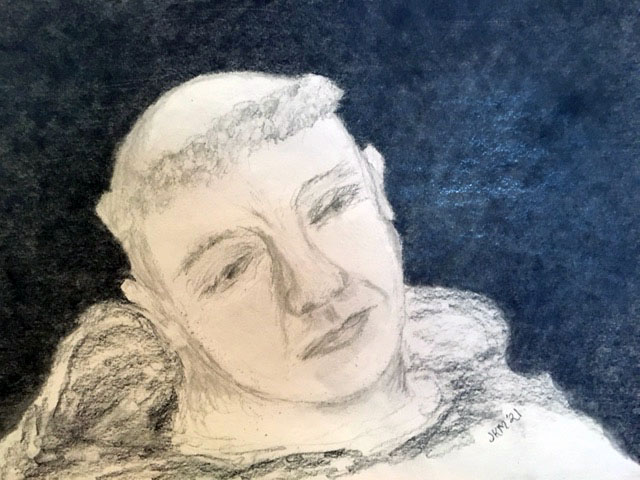 I didn’t notice when August left his family’s house. When I return to the hearthside of the guesthouse he is already here crouching by the fireside, smothered in his wools, not speaking to anyone but perhaps to God. At least I know he didn’t encounter his brothers. I dish some broth for him and a dish for me and I sit on the hearthstone to ask.