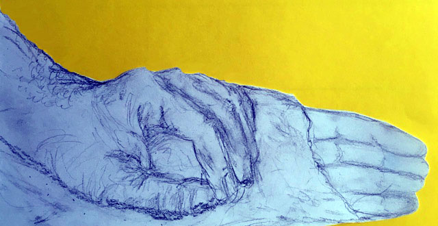 Ezra has never been much for talk so it is a shear blessing that he speaks to me now, though, I suppose he doesn’t expect that I can hear him. And I do have feeling and touch in my hand. He touches my hand with his. His hand feels dry and gnarled with age and hard work. Now he’s gone, and I’m alone again.