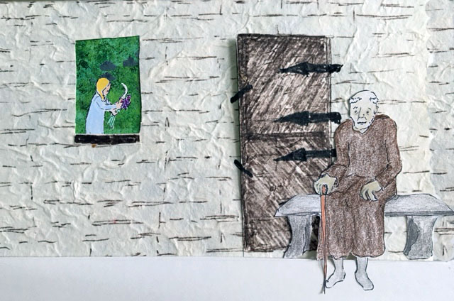 A small bench has been brought into this room and Daniel and Ezra bring a frail and aged man in and he is seated on the bench. He is clear-eyed in a monks robe; the fringe of his tonsure is pure white, not the silver of the Nic I remember. His hands are shaking like a choir director who has lost the tune. Eve brings his cane and places it near his hand. He thanks her with a very soft voice, and when he turns I see this is indeed Nic.
