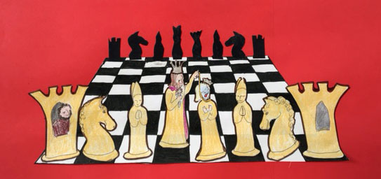 As we are taking the wagon to the livestock market outside of Tours, Count Bertigan, now married to my granddaughter, is filling me in on the not-secret-enough lives of the Kings and Queens of the Merovingian Dynasty. Brother August’s little issues with sibling rivalry are dwarfed by this chess game of brothers in battle. This youthful aggressor Bertigan surely sees himself as the landowner, the Rook in the game. He sees with his imagination that if everything stays unmoved the rook will be in line to switch places with the King in the surprise move that ends the game. But he dare not lose site of the all-powerful queens on the board. He yammers on.