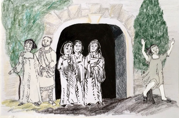 The nearby convent of the monastery of the Holy Cross has been tossed into a worse turbulence these days with the death of their abbess, Queen Ratigund on August 13. The appointment of a new abbess, Agnes, has inflamed the embers of disgruntlement already smoldering among the sister’s. The sisters of the Abby, like Ratigund herself, are daughters of nobility and these nuns have long chided the strict Rule for Virgins. But now they are in flat-out rebellion over the appointment of an abbess of lesser rank. [Footnote] Rumor has it they are no longer confined to virginity by the walls of the Abby. Some are giving themselves away to marriage, or worse. But I suppose the advantage of an earthly, autocratic power-structure such as the bishops maintain will save this establishment in the end.