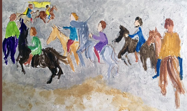After all this instruction we are mounted, ready to make our awesome display of “winning” or at least surviving, and the count adds that we are all invited to a victory feast tomorrow at his table. And so we go along the road those miles and through the gate making a circle in front of the house before we take the horses on to the stable. Celeste and her children step out to watch us circle around for no apparent reason, yet the count is very pleased.