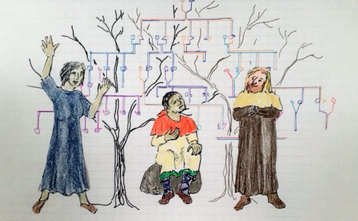 The Druid is going to make sense of his mention of a folk myth in which a fair maiden kisses a frog. It has to do with Thole being missing. Even though these people know the Celtic lore of “shape changing,” could anyone really believe they’ve made Thole into a frog? I await the explanation.