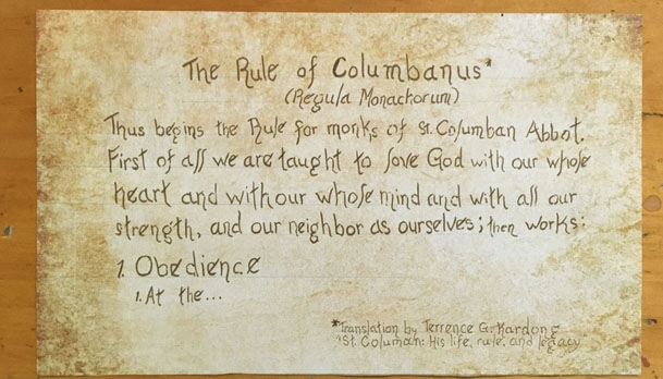 [Footnote2] The Rule of St. Columbanus (Regula Monachorum), Translated by Terrence G. Kardong, “St. Columban: His life, rule, and legacy” p.1. retrieved as a pdf 8-20-21