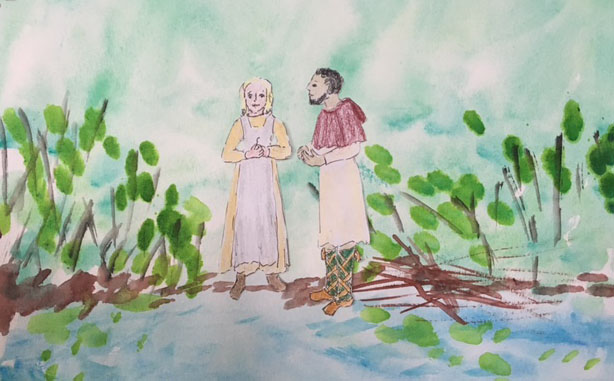 Says the servant brother. “I’ll just walk back alone now and I will let the father know the rule of Ana has been breeched and also we may soon be able to send all of our messages off to Ana on bird’s legs. I will bring you a pair of squabs that will always come home to your house when they are of an age to fly.”