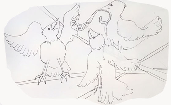 “Bringing a new bird now.” That was the message that arrived today on the leg of one of our birds. We had sent a message to Annegray that the boys arrived safely but we had not heard back, nor had we received the visitors we were expecting. Apparently Colleen is the only one concerned about baptism immediately. So now we hear that Brother Servant is coming today.