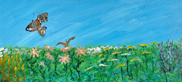 “The earth is making its last flaunting of summer days – the flowers – so many raucous, bright flowers hawking their wares of pollen. The wandering butterflies alight like long-travelers finding an inn and they savor the thirst-quenching moment and drink up the last of the summer’s beverage. Then they flutter up in little eddies two or three together over the meadow before they are on their way again.”