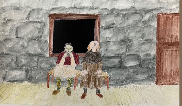 In this dark hour of matins, with Brother Servant, next to me on the bench, he drops his head back in sleep, gapping mouth, snoring loudly, and the interruption reminds the Fathers it is late. I extinguish the last candle, and stir a fresh log into the coals of the worn fire then retire to the other room with Ana and baby Layla — until very soon the rooster wakens us.