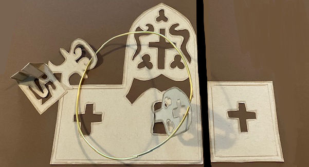 This basilica is a massive open space, a holy wilderness of nothing. There is an apse and an altar at the farthest end. Mostly, it is a gaping space for armies of worshippers to stand for the Gospels and the mass. But on the north wall, behind the columns is a small table on a little square of a weave of a rug. On the table are candles and one is lit. Of course, this must be the entrance to the tunnel, unless the secret opening would be in the vestry. But I can imagine the opening wouldn’t be in a place where young soldiers aren’t allowed to go. So most likely it is here and not hidden in the vestry. And here are the candles that would be needed for lighting tallow torches. I search under the candle table. Yes, here it is. The little rug hardly is large enough to cover the door in the floor. So I light a candle to take along with me, as I lift the rug and the hidden door under it together.