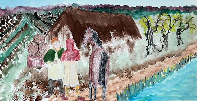 This morning I leave early on the borrowed horse. Ana doesn’t exactly send me off with her blessing. She thinks it’s foolish for a pacifist as I am to go off to quill a fight among wine growers. But, while Brandell is going off across the full span of the earth, I’m simply visiting our neighbors with the plea that they may be welcoming to the settlers coming to the area.