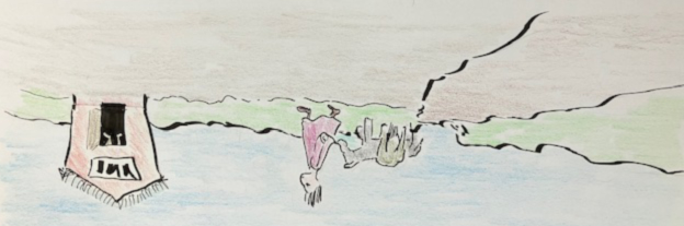 “Yes!” The vintner’s hand gestures are so grand he stands up to recite the story! “It is that story that says it all!” Now he finds his seat again, and pours us both some vinegar. “The story goes, a man was walking down the river path.”