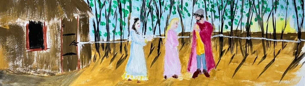 The music stops and now a hush moves throughout the crowd as Gaia’s hand touches one bundle of tightly tucked straw. What is this? She knows by the cheerful sounds of the people it must be something sighted people expected her hand to discover.