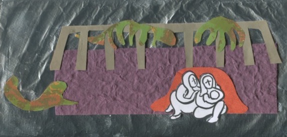 Meanwhile Ana and Layla are cleaning the mud from the places that aren’t covered with the hide. They’ve set up the hide as a hunter’s tent within the walls of the mud brick house.
