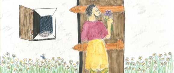 I tap on the door of our cottage like a young lover with a bouquet in hand, hoping she will come smiling to me and open the door. I wait here for someone to answer the door to my own house. It’s Hannah who finally comes.