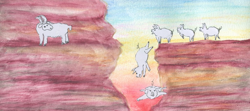“Papa, are you arguing with me because you just can’t let go of your ancient root where Jesus sends pigs hurdling from the cliffs to drown demons? [Mark 5:1-20] Or maybe you are clinging to your Jewish root, burdening a poor goat to carry all the sins of Israel into the wilderness for an annual ritual. [Lev. 16:20-22]”
