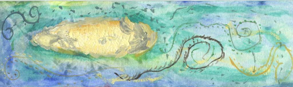 So, Ana sends me off to take the grandchildren to the creek to dig for clay. That’s what set me thinking about the nature of stagnant things. I came along with them to guide them away from the stagnant pool that was trapped to stillness at the water’s edge. We saw the white belly of a dead fish in the muck and I told the children to stay away from “that stagnant water.”