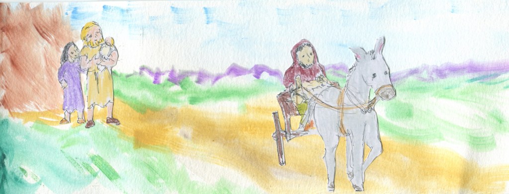 Will hears the donkey snorting and trotting up the path to their patch. He comes out to greet Layla and takes the baby in his arms as Layla steps from the cart.