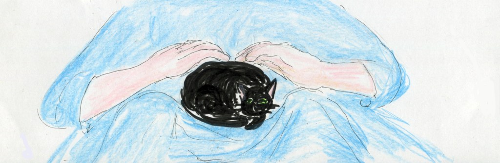 “I’m telling you watch and learn, dear child. When you find your golden tresses are white, and your fingers too stiff to manage the blade or even wind a spindle, or perhaps it will be your eyes that dim, or perhaps no affliction will come to you except your children will think you too old to feed a cat, then you will remember sitting and staring at nothing is not the only option for the aged. True it may be that standing up from the bench is slower, and staring isn’t at nothing, rather at things never noticed before. And a cat that chooses the warmth of your lap is a lovely gift. It’s purring song is more of touch than hearing. Beautiful is the cat.”