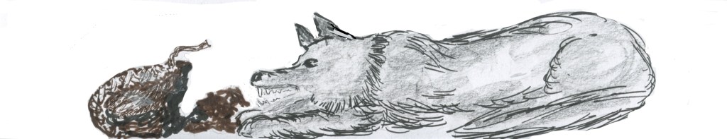 I’m thinking of the family of wolves that chose to take me in, assuming I needed food and rest and warmth. They shared their den and their food and water with this human being, even though, among wolves, humans are probably known to be greedy, stinky and violent.