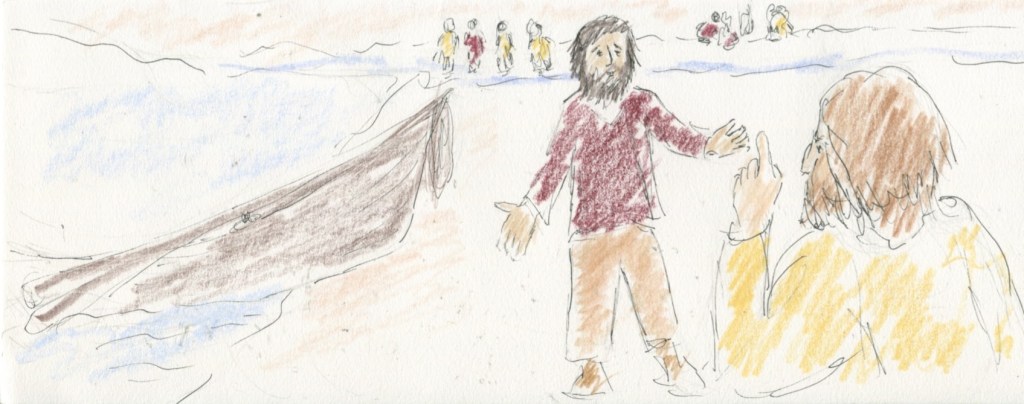 He makes good on his promise to pay for my work as a rower, giving me a woven woolen shirt. He provides one that was once dyed red, which seems very fine quality and I suppose the color would add to the cost. I humbly offer to take an undyed shirt if that would be a savings. He gives me a long incredulous glare.