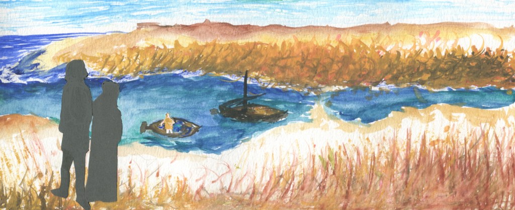 A cold January wind whips off the sea and this poor waif draws my cloak tighter around her. It is the same gust of wind that shivers me and reminds me of my sacrifice. Do I give up my cloak so easily because I think God needs to be reminded of my goodness? Maybe that was a thought that crossed my mind. But, as much as I would like to win God’s approval, like adding a star to my crown in heaven, I know in my brain God doesn’t love a person by the measure of their goodness.