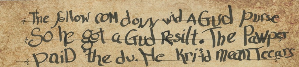 The judgement made by this king’s appointee is always won by whoever gives this ealdorman a coin, or a fish, or the skin of the rabbit in question. Therefore, the judgment always goes against the poor and his descriptive words for the poor and needy are also a euphemistic degradation. He has names for those who can’t pay for his favorable judgement: “paupers,” “urchins” and “leeches.” The use of judgmental euphemism made this house a “castle,” and it tells how he continually brought suffering down on the poorest of these people.