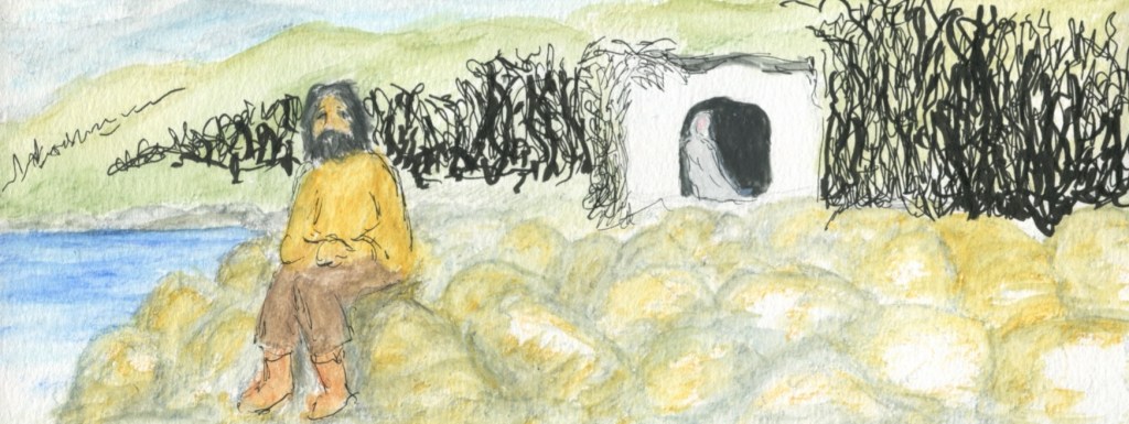 Now I understand. Sjókona came here to rescue an abandoned infant. But that could happen any time or never. I’m hungry and losing patience with doing nothing. So, I go down to the sea to look for shell fish and crabs, and she follows me.