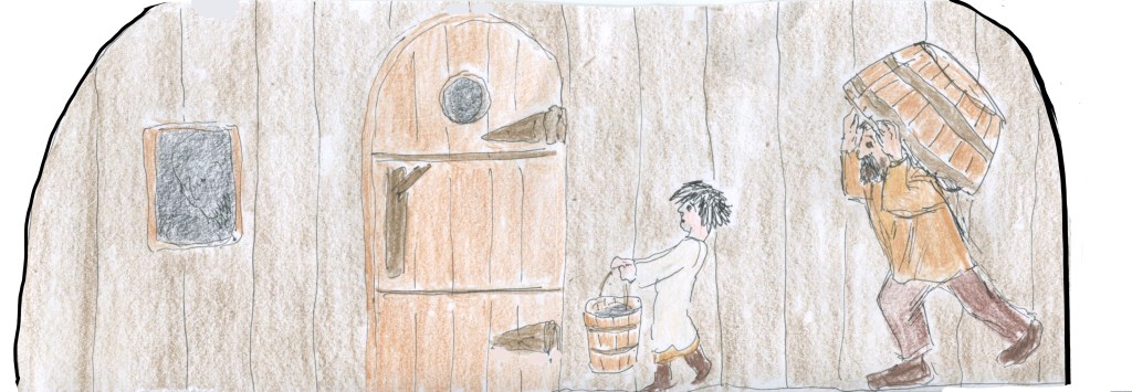 In the end the abundance overflows the boundaries of station. Late into the feast this night no one is making anymore plans to distribute so much moose meat. My arms have a long reach to get whatever I want, and if I’ve made any enemies of these people they’ve forgotten already, so I can enjoy the abundance of it all. In fact, the horn of beer for the master’s circle is handed to me often now.